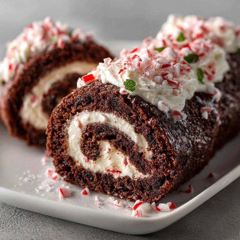 Picture this: the air thick with the scent of dark cocoa, the sharp, refreshing cut of peppermint, and a faint, sweet whisper of vanilla that lingers like a secret. The sound of the chocolate stirring in the pot is a comforting, rhythmic hiss, while the first drop that lands on the parchment sends a soft, satisfying crackle. When the finished roll is sliced, the layers give a subtle, almost audible pop, and the first bite releases a velvety melt that coats the tongue like silk. The texture is a delightful contrast—smooth chocolate, crunchy peppermint, and a light dusting of powdered sugar that dissolves instantly.