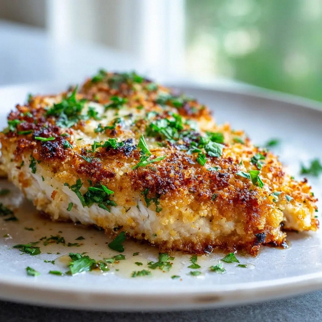Fresh parsley isn’t just a garnish; it adds a bright, herbaceous note that cuts through the richness of the crust. Toss it in just before serving to preserve its color and freshness, or sprinkle it over the chicken right after it comes out of the oven for an extra pop of flavor. A pinch of lemon zest can also be added to the parsley mix for a citrusy lift.